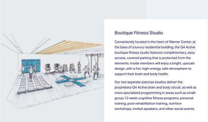 Q4 Active is an entirely new fitness concept designed especially for adults 50+ to support their combined physical and brain performance in a welcoming, safe, engaging, fun and energizing experience. We know our members have different goals and levels of ability, so we offer multiple levels of the same class to meet you and your ability level where you are. Furthermore, our continuously rotating class schedule allows members the opportunity to experience a variety of classes.