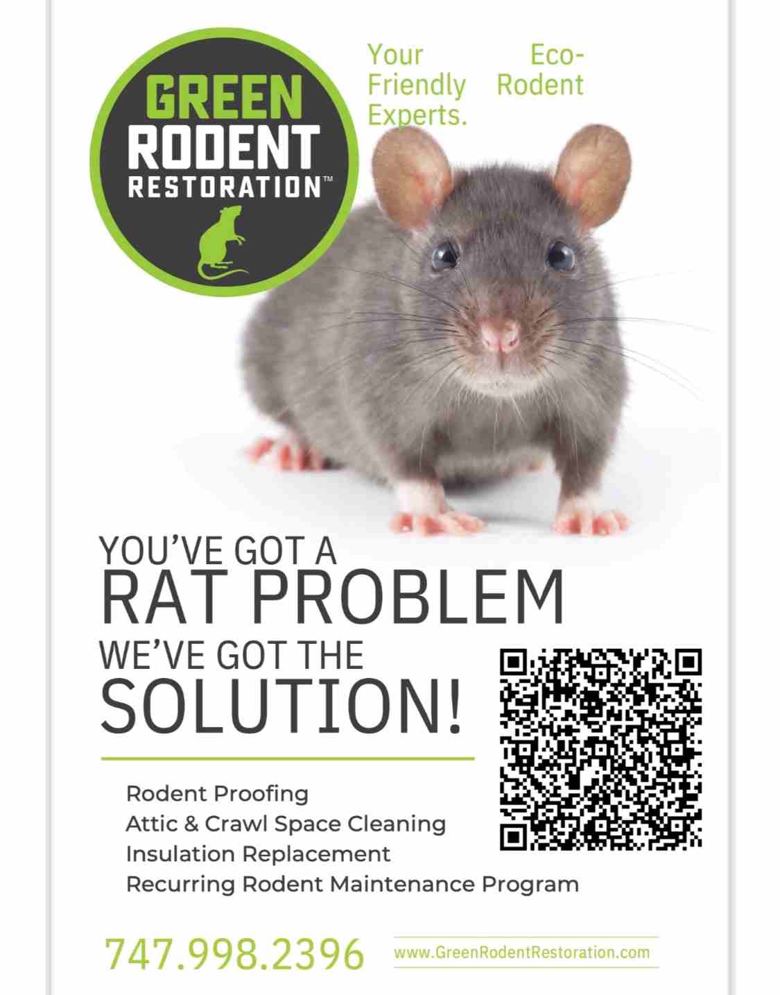 Green Rodent Restoration is family owned and specializes in eco-friendly, non-toxic and 100% poison-free rodent and attic services. We are recognized as a certified green business. Our services areas include LA, Ventura and Orange County. Our expert team specializes in Rodent Inspection (Identifying infestations and entry points); Rodent Exclusion (Sealing access points to prevent future invasions); Rodent Trapping and Removal (Safe and humane elimination of rodents); Attic Cleaning and Decontamination (Removing contaminated materials and sanitizing affected areas); and Insulation Replacement (Installing new insulation to restore energy efficiency). Protect your property from the health risks and structural damage caused by rodents. We offer tailored solutions to keep your home rodent-free. Contact us today for your free inspection and be sure to mention you're from Maiden Community!